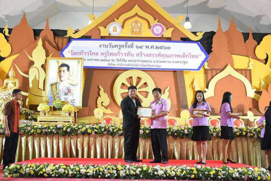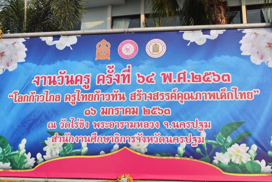 กิจกรรมงานวันครู ครั้งที่ ๖๔ พ.ศ.๒๕๖๓ จังหวัดนครปฐม ?ครูไทย รักศิษย์ คิดพัฒนา? วันพฤหัสบดีที่ ๑๖ มกราคม ๒๕๖๓ ณ วัดไร่ขิงพระอารามหลวง จังหวัดนครปฐม สำนักงานศึกษาธิการจังหวัดนครปฐม S:0