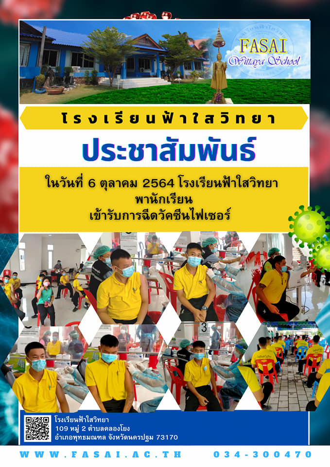 ในวันที่ 6 ตุลาคม 2564 โรงเรียนฟ้าใสวิทยาได้พานักเรียนเข้ารับการฉีดวัคซีนไฟเซอร์ ตามมาตรการป้องกันการแพร่ระบาดของโควิด-19 ในโรงเรียน ที่เรียกว่า Sandbox Safety Zone in School