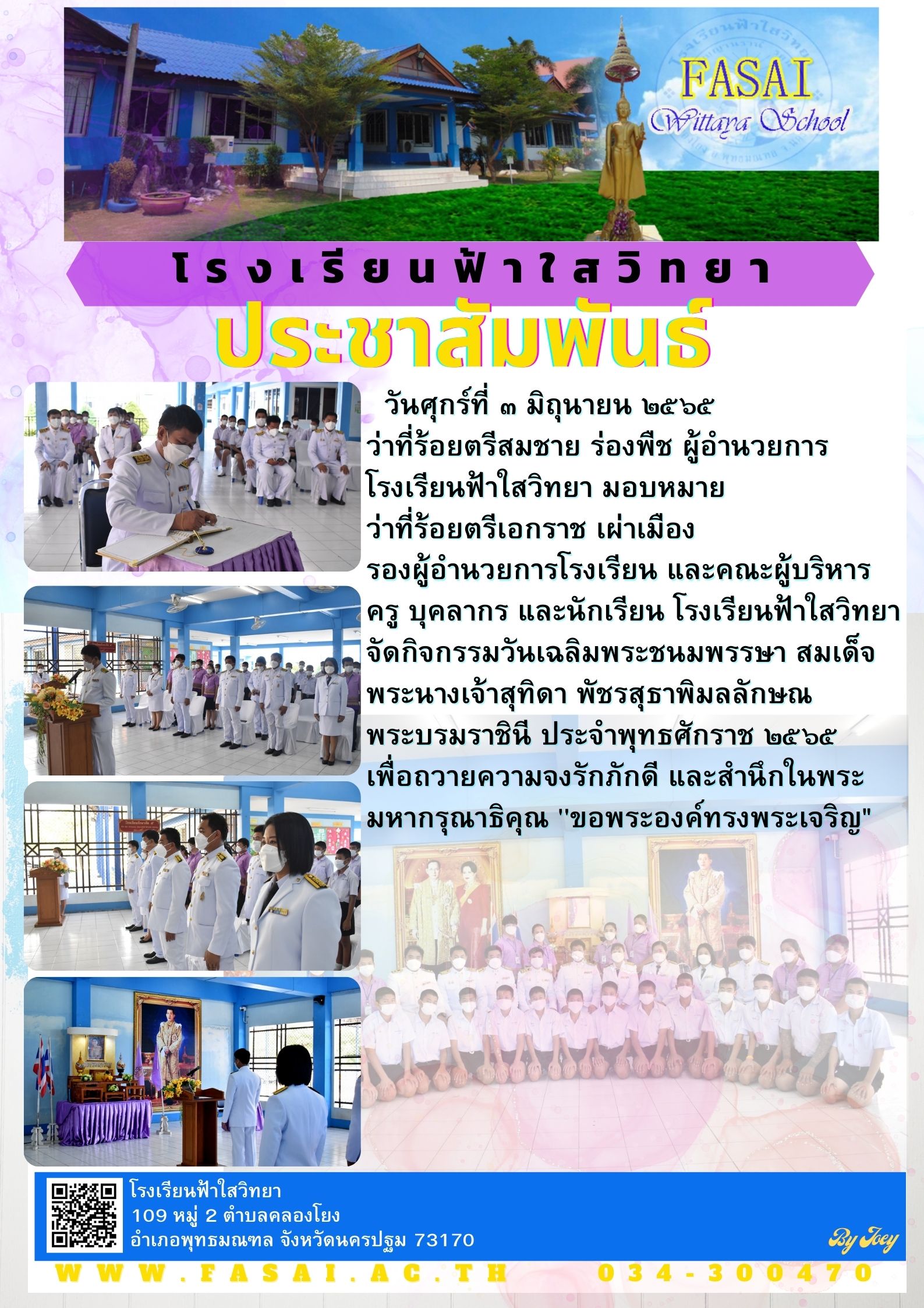วันศุกร์ที่ ๓ มิถุนายน ๒๕๖๕ กิจกรรมวันเฉลิมพระชนมพรรษา สมเด็จพระนางเจ้าสุทิดา พัชรสุธาพิมลลักษณ พระบรมราชินี ประจำพุทธศักราช ๒๕๖๕
