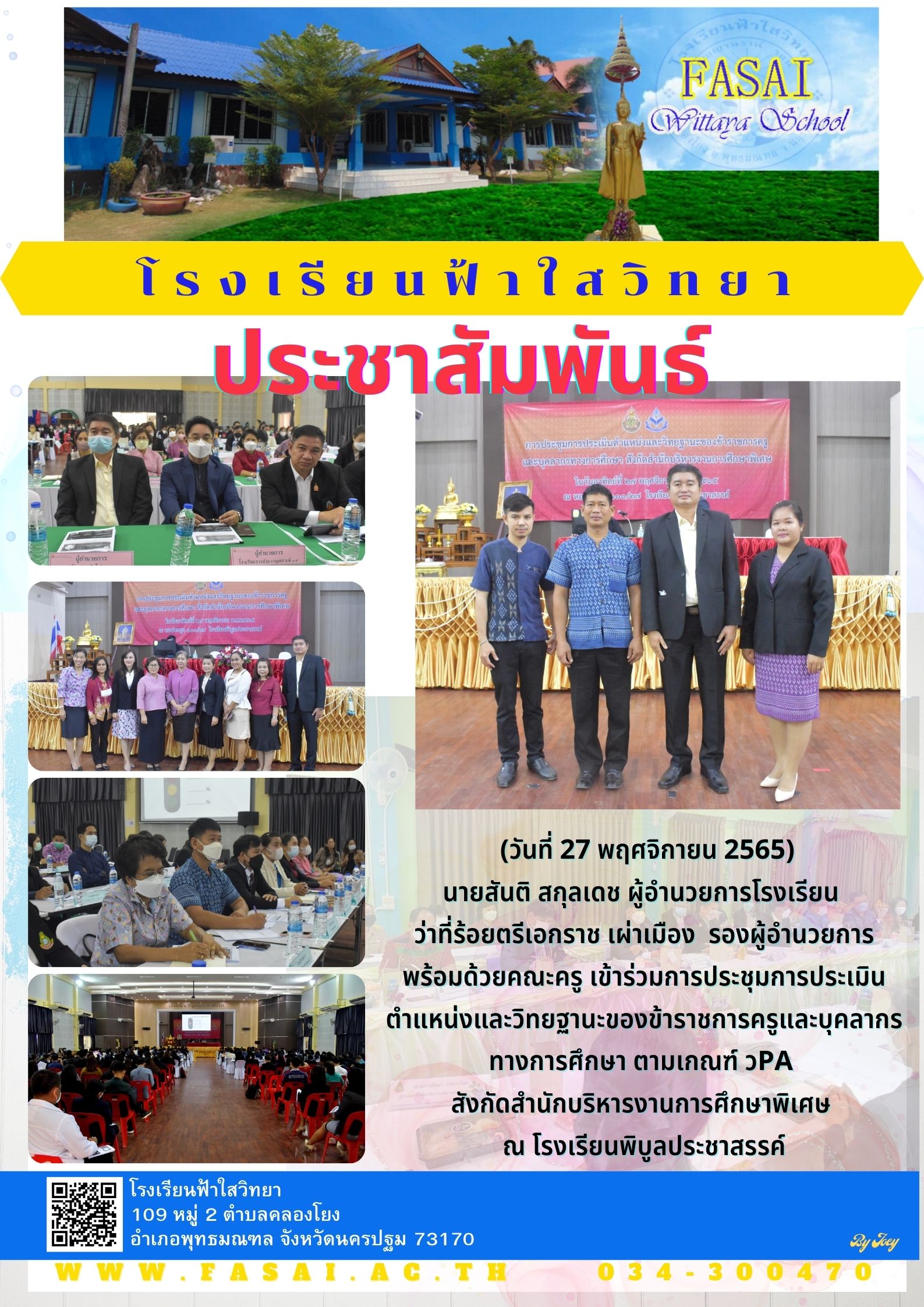 (วันที่ 27 พฤศจิกายน 2565) นายสันติ สกุลเดช ผู้อำนวยการโรงเรียน ว่าที่ร้อยตรีเอกราช เผ่าเมือง รองผู้อำนวยการ พร้อมด้วยคณะครู เข้าร่วมการประชุมการประเมินตำแหน่งและวิทยฐานะของข้าราชการครูและบุคลากรทา