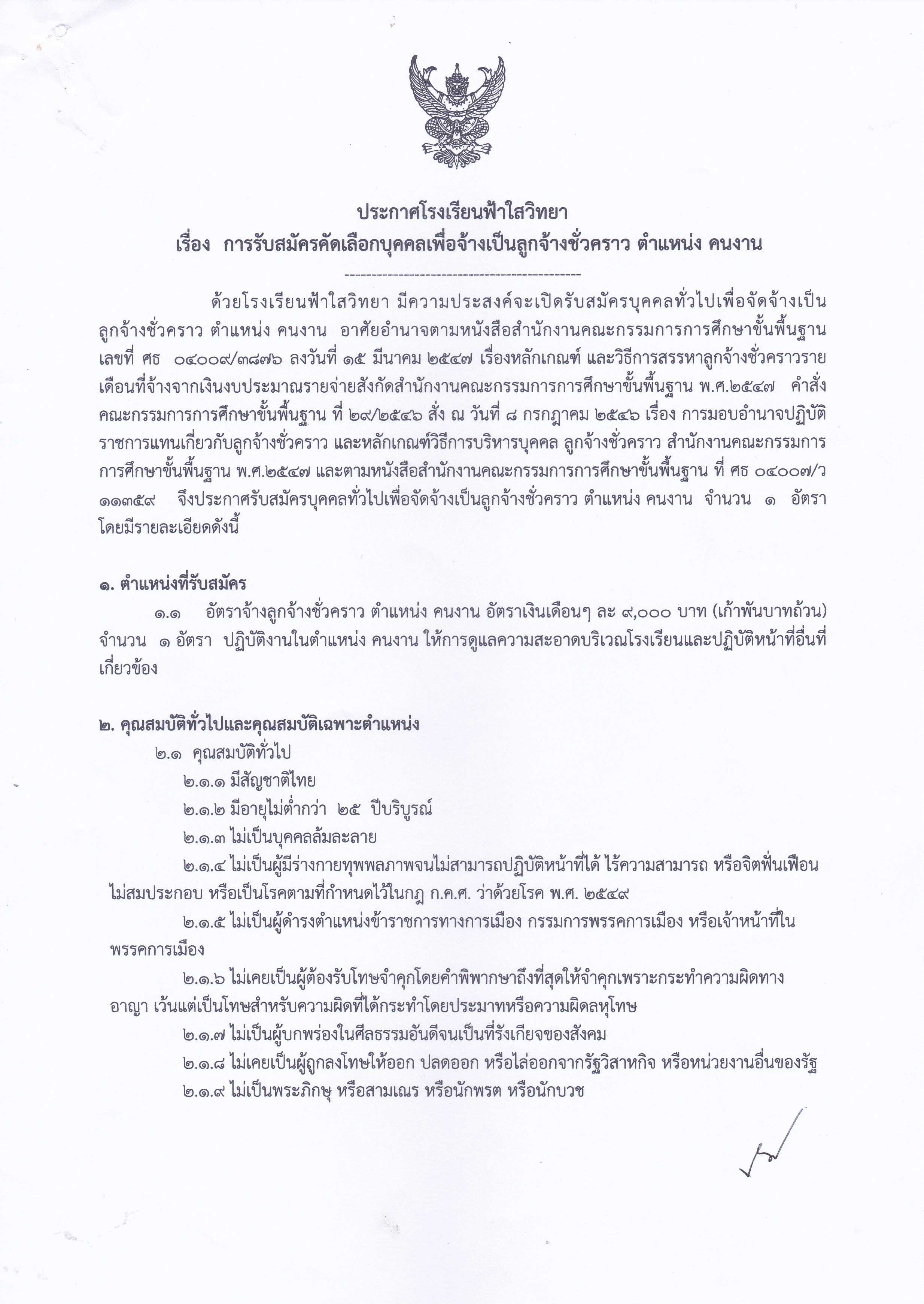 ประกาศรับสมัครลูกจ้างชั่วคราว ตำแหน่ง คนงาน