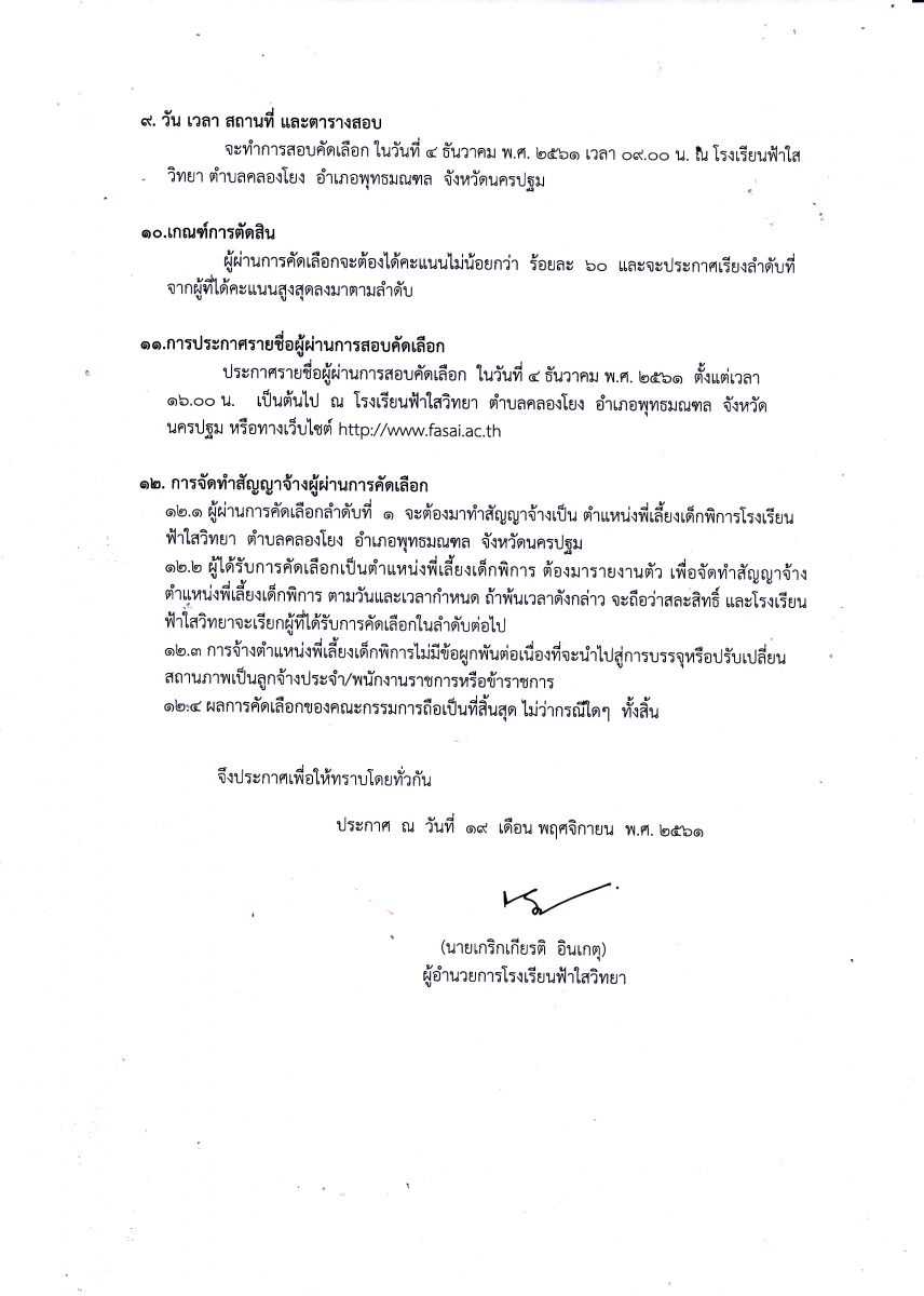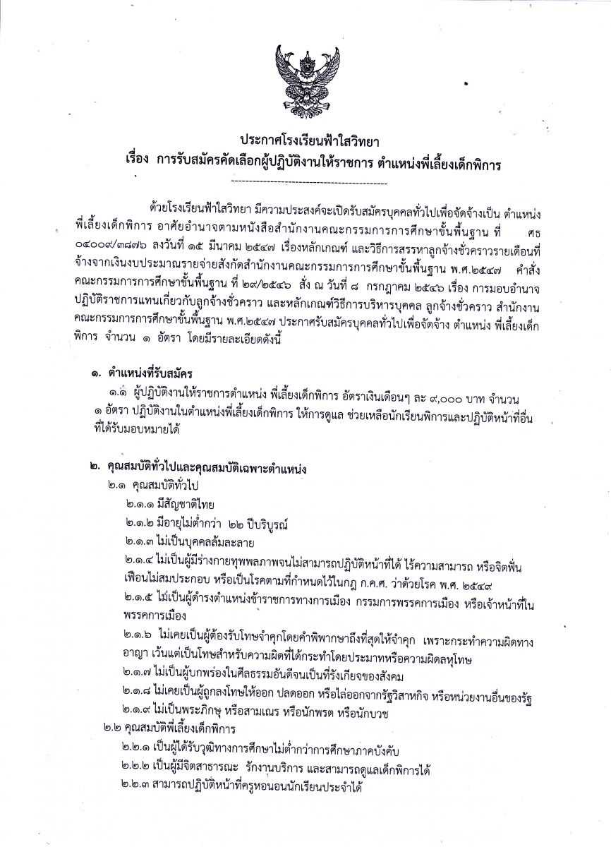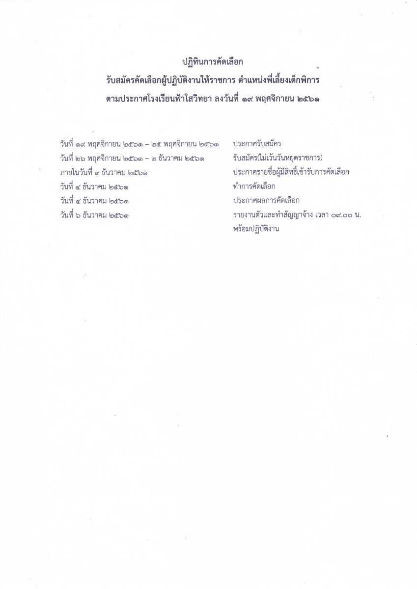 ประกาศรับสมัครลูกจ้างชั่วคราว ตำแหน่ง พี่เลี้ยงเด็กพิการ ลงวันที่ 19 พ.ย.61