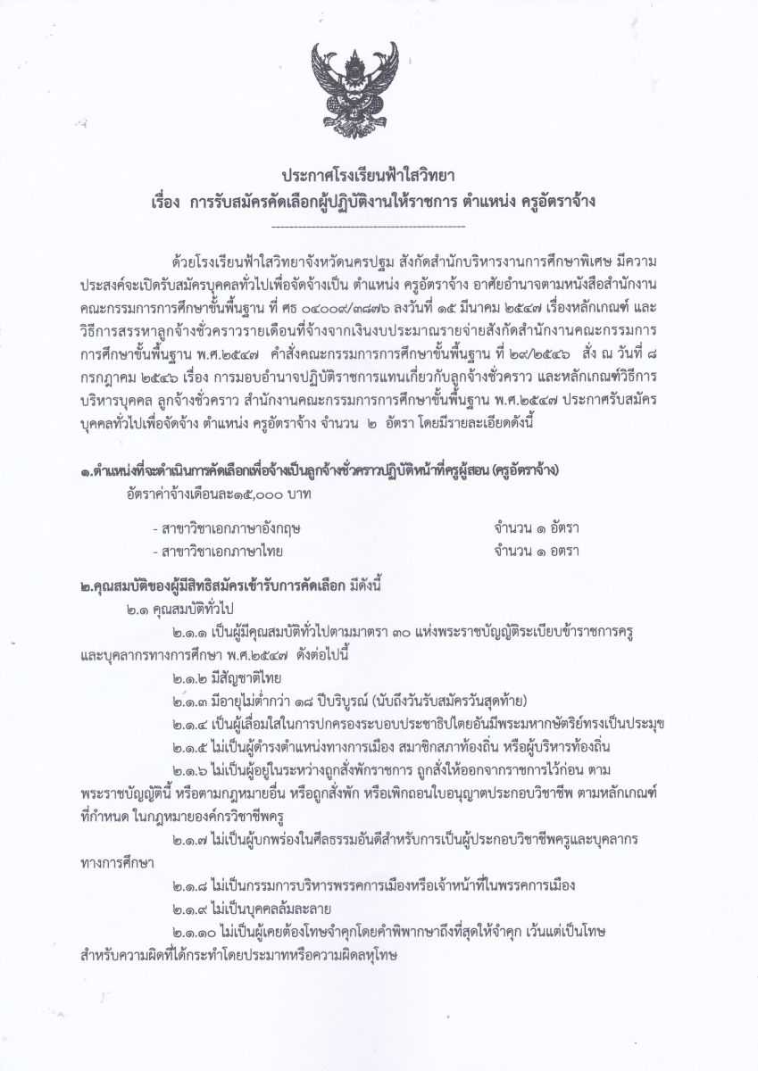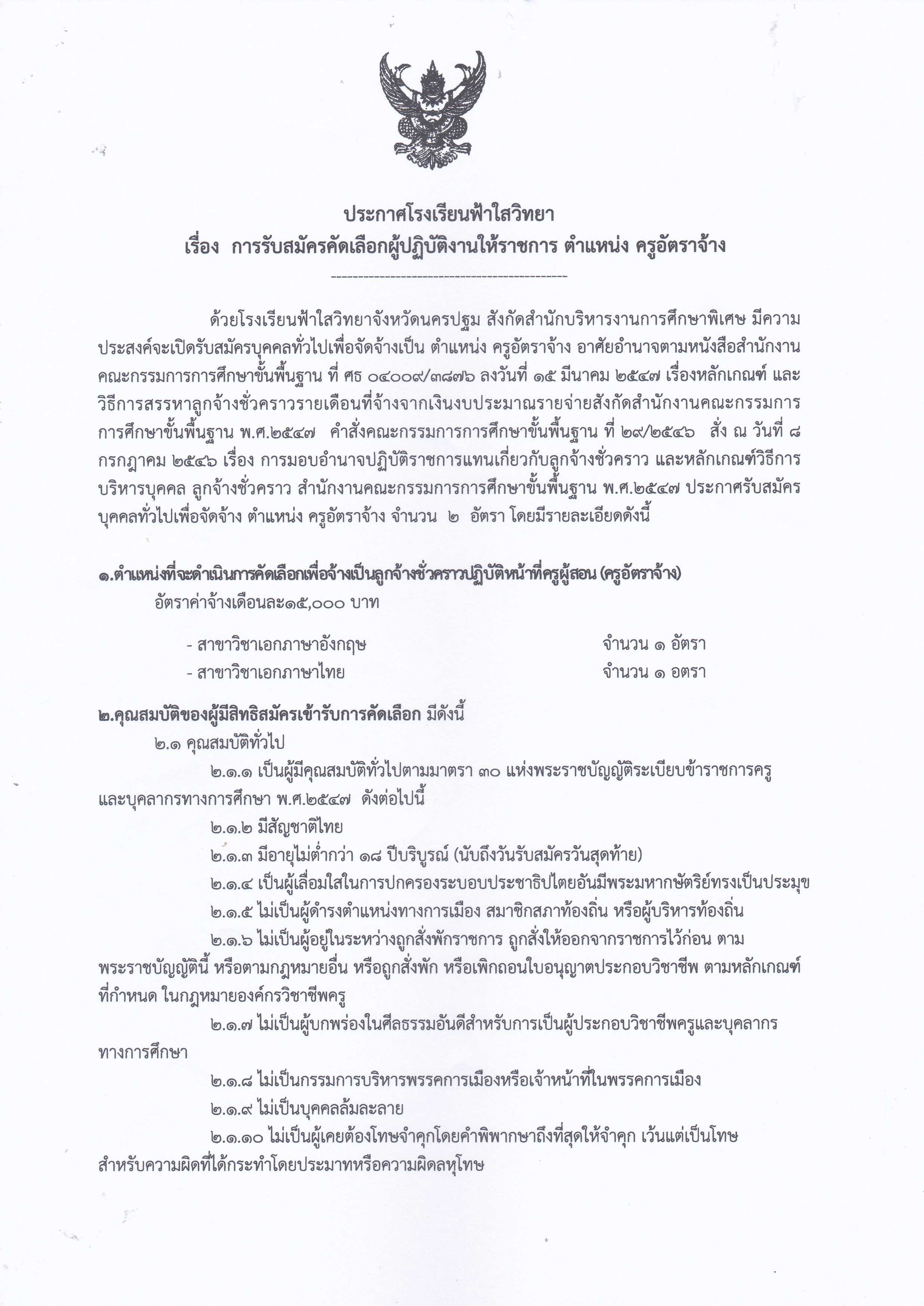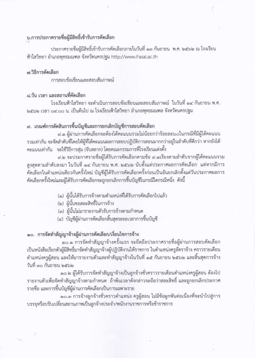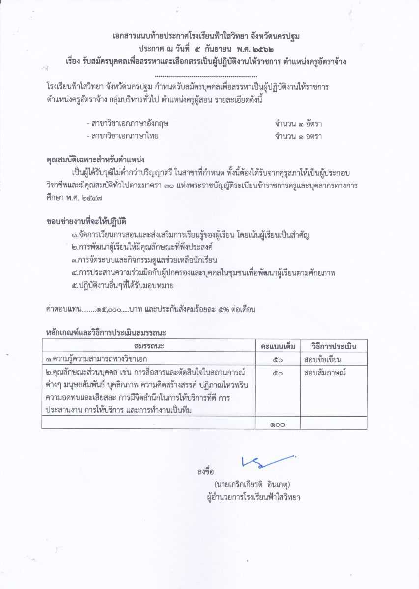 ประกาศโรงเรียนฟ้าใสวิทยา ลงวันที่ 30 สิงหาคม 2562