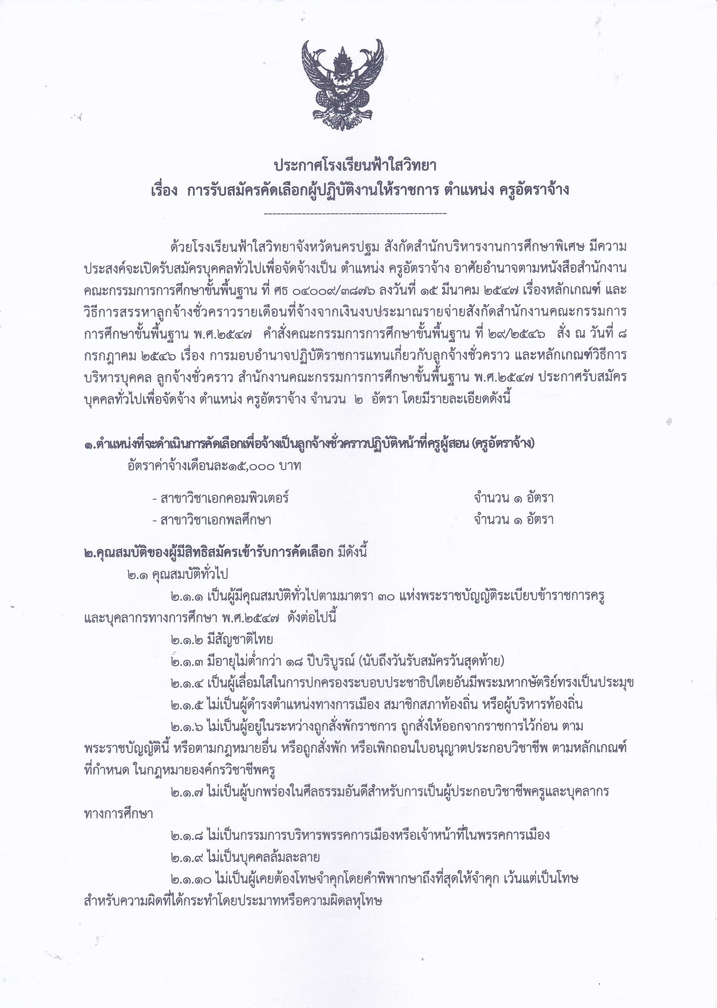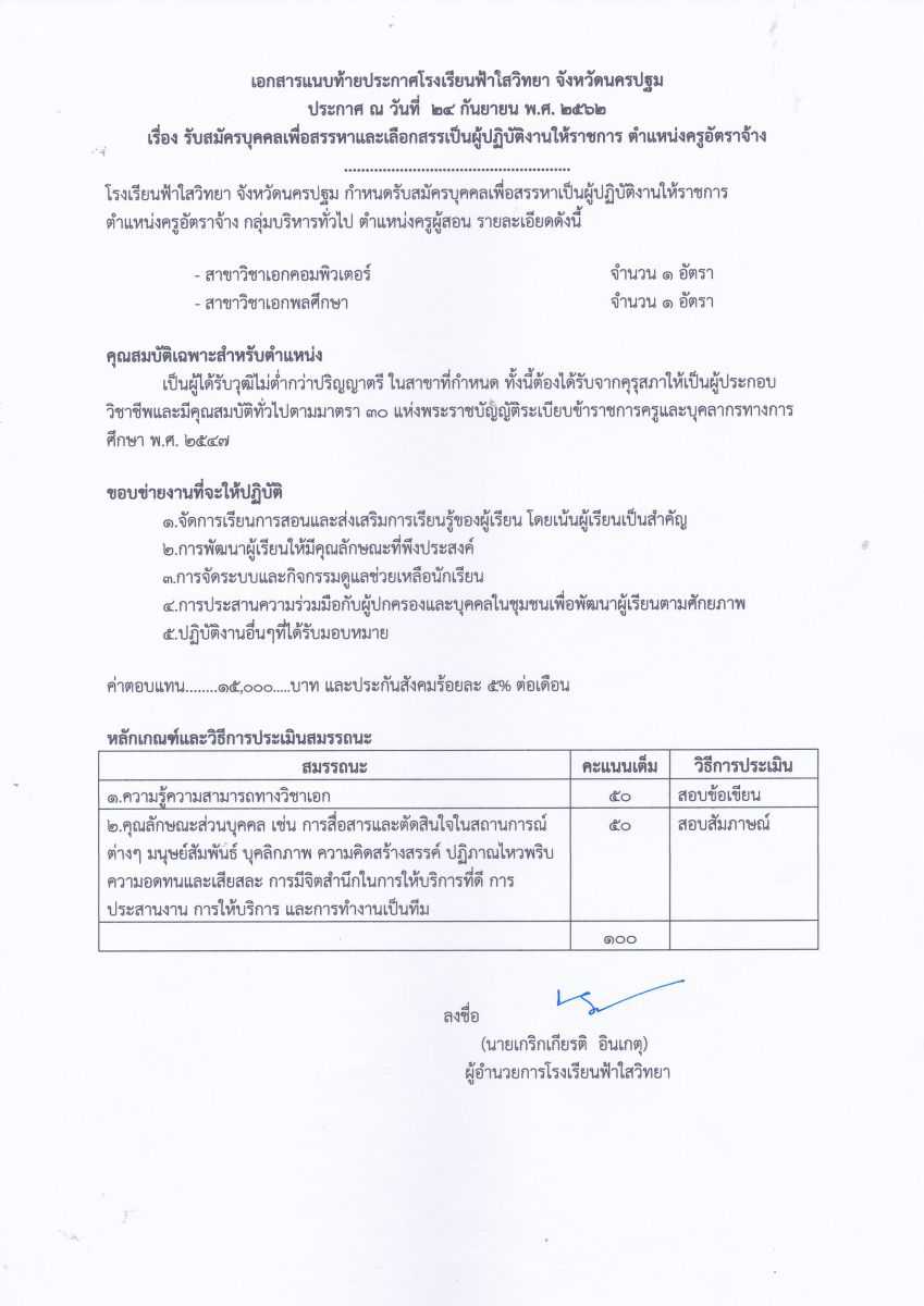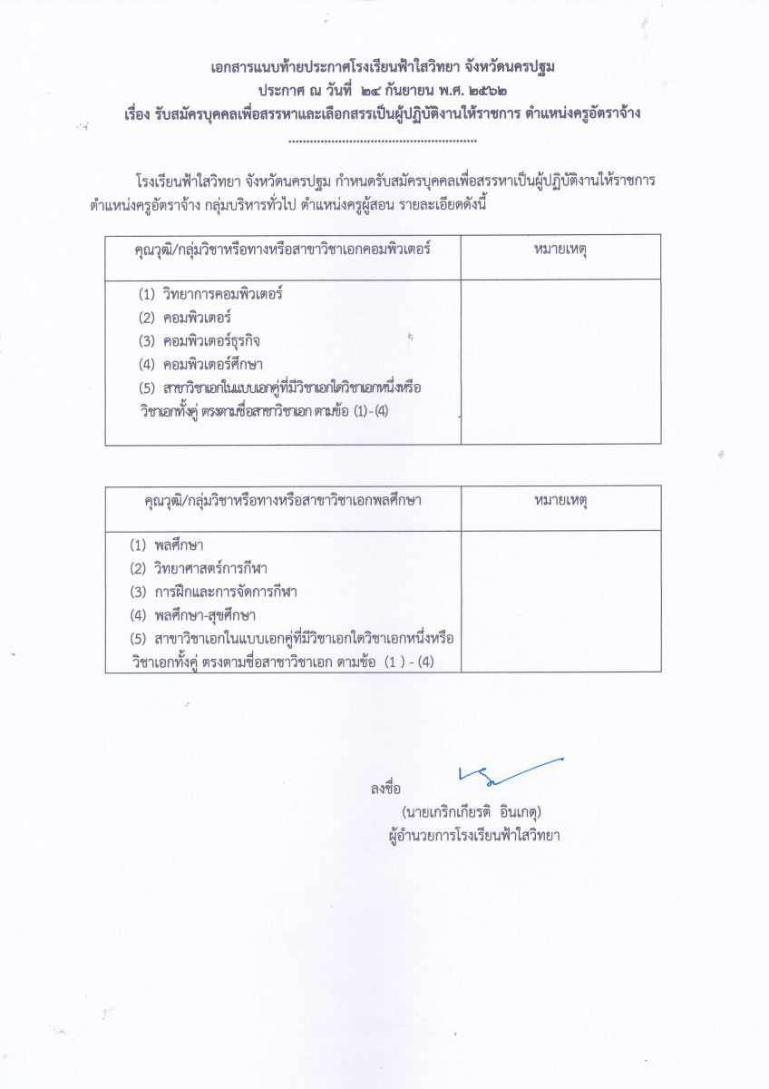 ประกาศรับสมัคร ตำแหน่ง อัตราจ้าง