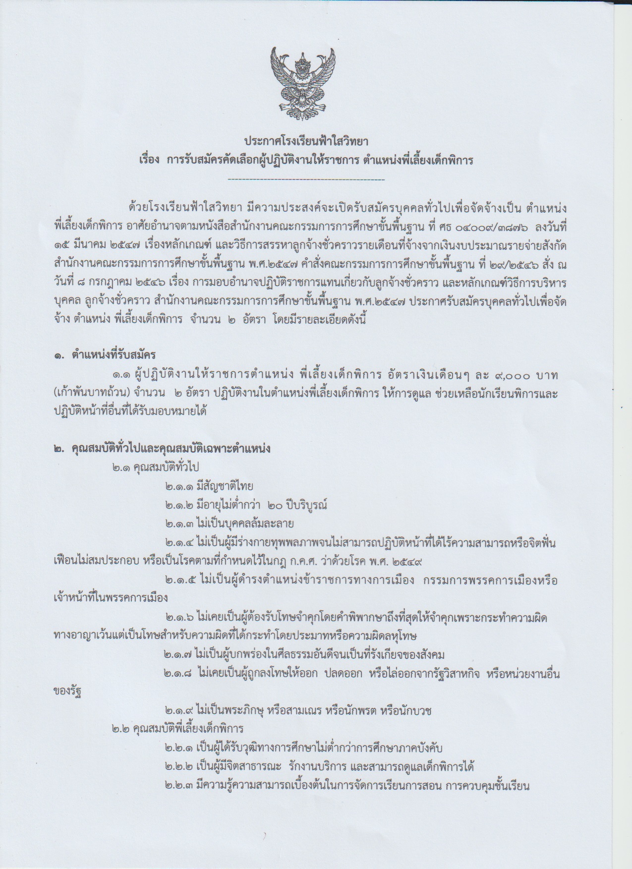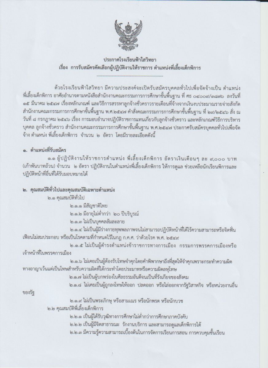 ประกาศรับสมัครลูกจ้างชั่วคราว ตำแหน่งพี่เลี้ยงเด็กพิการ จำนวน ๒ อัตรา ระหว่างวันที่ ๒๓ - ๒๙ พฤษภาคม พ.ศ.๒๕๖๓